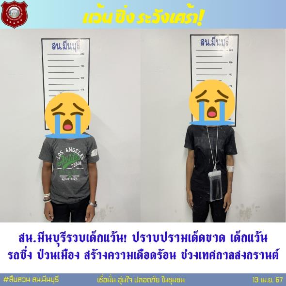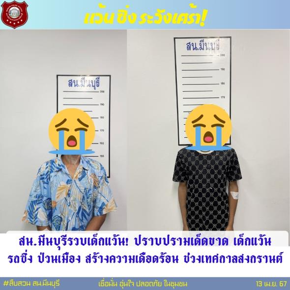 ฝ่ายสืบสวนมีนบุรีและฝ่ายจราจรมีนบุรี รวบเด็กแว้น! 10 ราย ตามคำสั่งมีนบุรี1 ให้ปราบปรามเด็ดขาด เด็กแว้น รถซิ่ง ป่วนเมือง สร้างความเดือดร้อน ช่วงเทศกาลสงกรานต์วันที่ 14 เม.ย.67เจ้าพนักงานตารวจฝ่ายสืบสวน สน.มีนบุรี ถนนหทัยราษฎร์ แขวงบางชัน เขตคลองสามวา กรุงเทพมหานคร