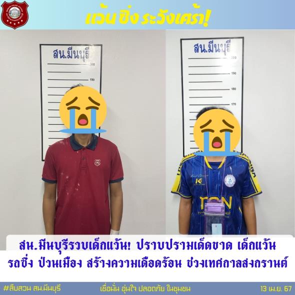 ฝ่ายสืบสวนมีนบุรีและฝ่ายจราจรมีนบุรี รวบเด็กแว้น! 10 ราย ตามคำสั่งมีนบุรี1 ให้ปราบปรามเด็ดขาด เด็กแว