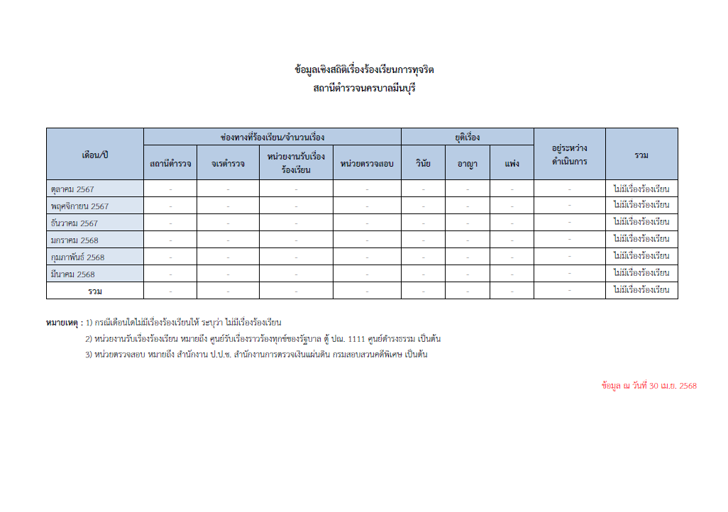 ข้อมูลเชิงสถิติเรื่องร้องเรียนการทุจริต